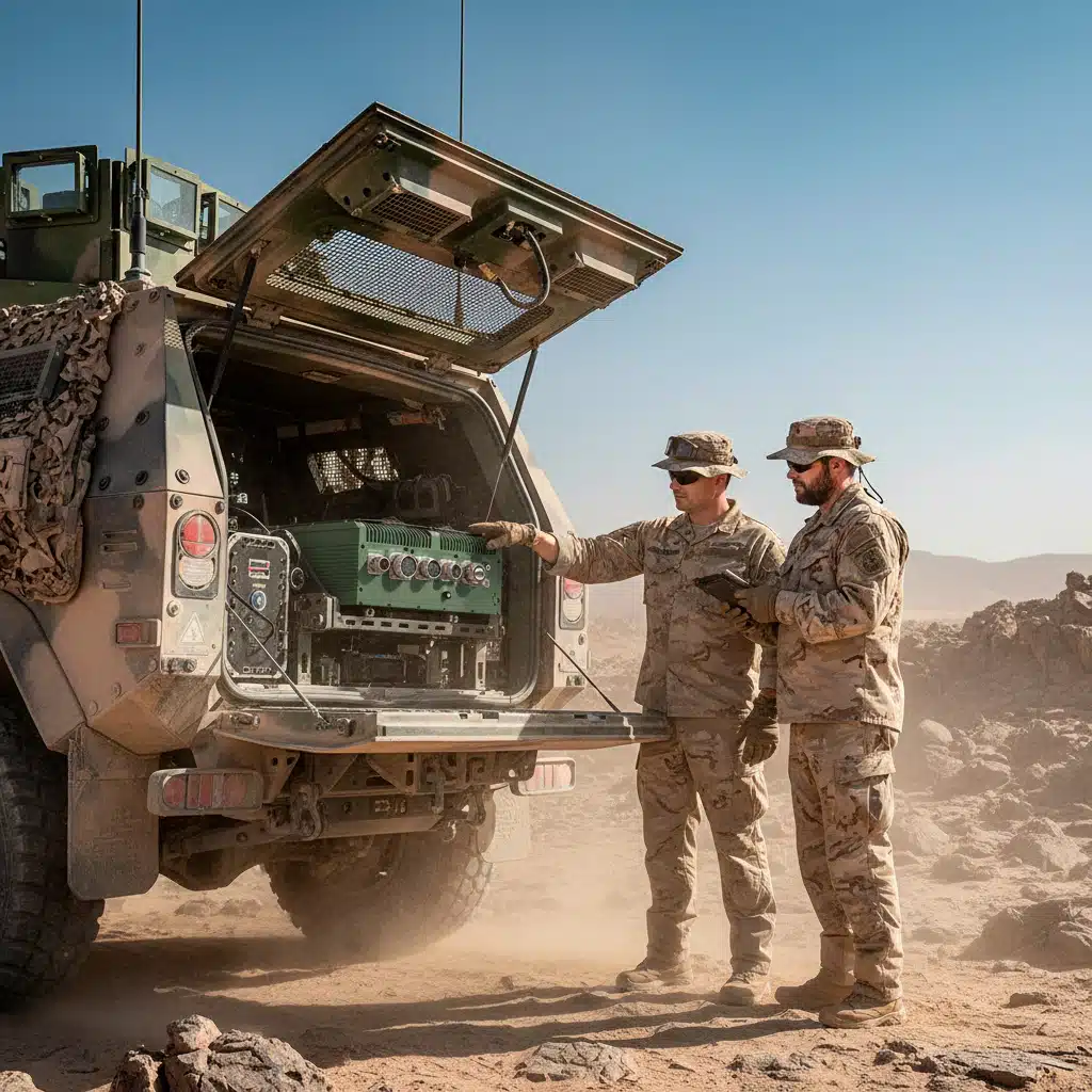 The Defense AI EDGE GPU Computer DPC‑2000 is engineered for harsh military and industrial applications. Its rugged aluminum enclosure, MIL‑STD Amphenol-type connectors, and full IP66 protection ensure reliability in extreme conditions, while the advanced hardware delivers exceptional AI and GPU performance at the edge.